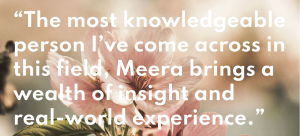 As a medically qualified doctor I’m fully aware of the toxic side effects of a lot of medicines, so I was pleased to receive Meera’s Eastern-based therapy which was effective and side effect free. Meera also teaches me Ascension Meditation, which has completely changed my life. I’d really highly recommend her services and would encourage you to explore Ascension Meditation as an effective method of coping with today’s modern day stresses. – Davinder T.